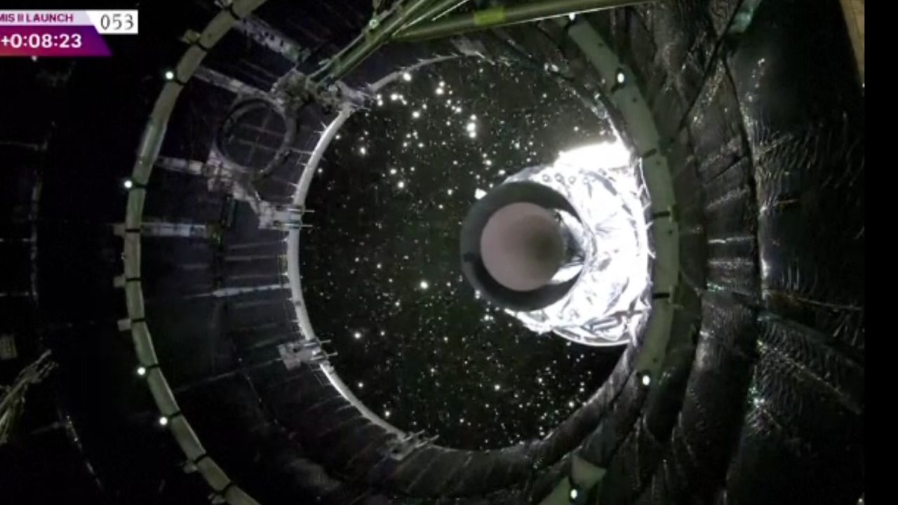 La opt minute după lansare, cei patru astronauți au trecut de linia Kármán, marcând granița dintre atmosfera Pământului și spațiu, și și-au îndreptat privirile spre o Lună strălucitoare. Comandantul misiunii, Reid Wiseman, a afirmat: „Vedem o Lună frumoasă și ne îndreptăm direct spre ea.”
